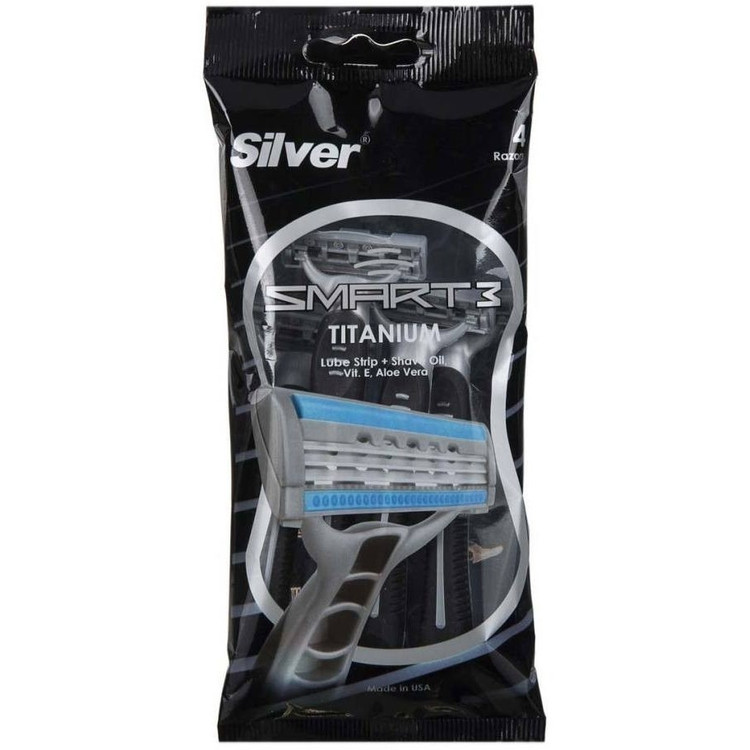 تیغه های تیغ اصلاح آقایان چند بار مصرف 3 لبه مدل اسمارت 3 سیلور از جنس تیتانیوم ساخته شده اند به همین دلیل اصلاحی صاف و یکدست خواهید داشت. این تیغ به دلیل دارا بودن یک نوار ژل آبی در بالای خودتراش که غنی شده با عصارهی آلوئه ورا و ویتامین E هم می باشد به سر خوردن راحت تیغ بر پوست و تراز سه تیغ بر پوست کمک میکند. همچنین این نوار ژلی علاوه بر اینکه اصلاح را آسان می کند پوست را نرم و لطیف نیز می کند.فاصلهی لبه های تیغه به گونه ای طراحی شده که به راحتی با جریان آب تمیز شود.
