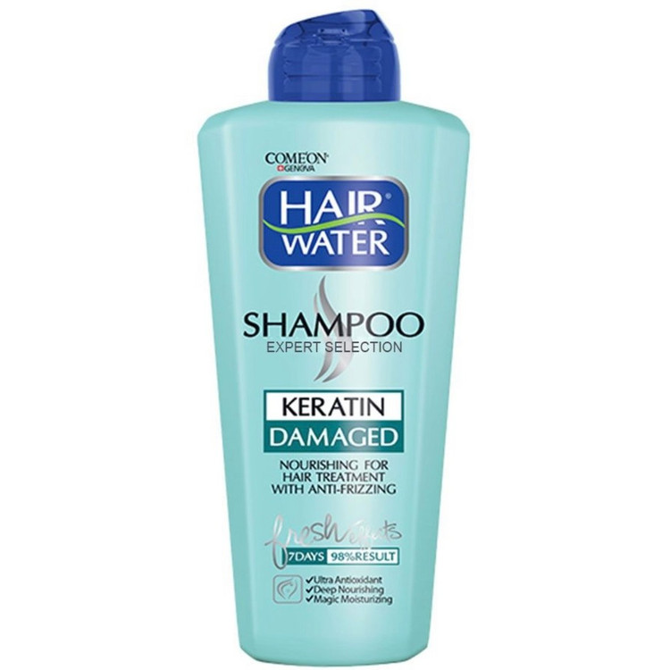 شامپو کراتينه کامان مدل هير واتر مخصوص موهای آسیب دیده، حاوی پروتئین و کراتین است که به طور خاص کار آن بازسازی، احیا و رطوبت رسانی عمیق موها میباشد و همچنین از موخوره و دیگر آسیبها مو در اثر کمبود کراتین در موها، جلوگیری میکند. این شامپو همچنین، استحکام و مقاومت موها را افزایش میدهد و همچنین با توجه به فرمولاسیونی که دارد، باعث تثبیت رنگ موها میشود. این شامپو فاقد سولفات و دیگر مواد شیمایی مضر برای موها و پوست سر است و میتواند با خیال راحت بدون اینکه موهای خود را آسیب بزنید، از آن استفاده کنید.